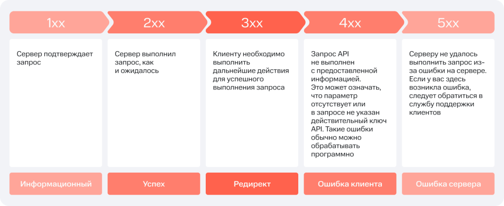 Коды групп 1xx, 2xx и 3xx в подавляющем большинстве случаев остаются невидимыми для конечного пользователя: они предназначены для браузера, а не для человека за экраном.
