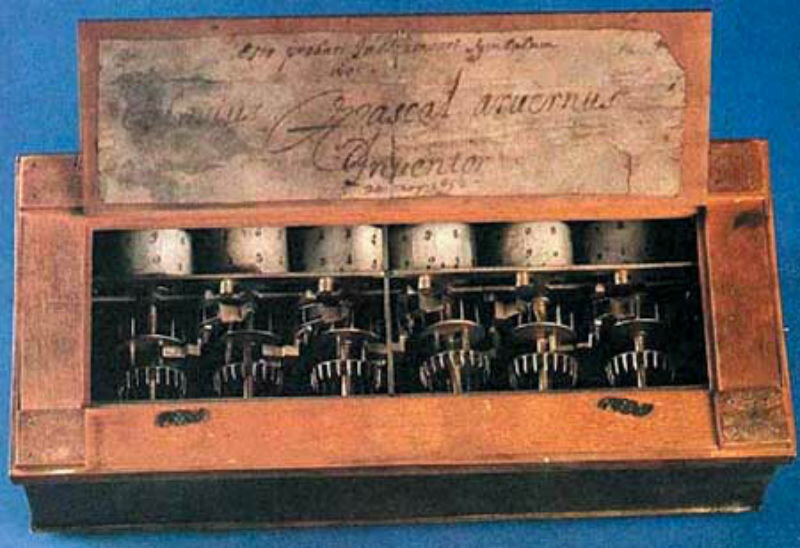 Справедливости ради необходимо упомянуть и «Считающие часы» — устройство, изобретённое немецким математиком и астрономом Вильгельмом Шиккардом в 1623 году, за двадцать лет до создания Паскалины. Они работали на схожем принципе, и именно изобретение Шиккарда следует считать первым арифмометром.