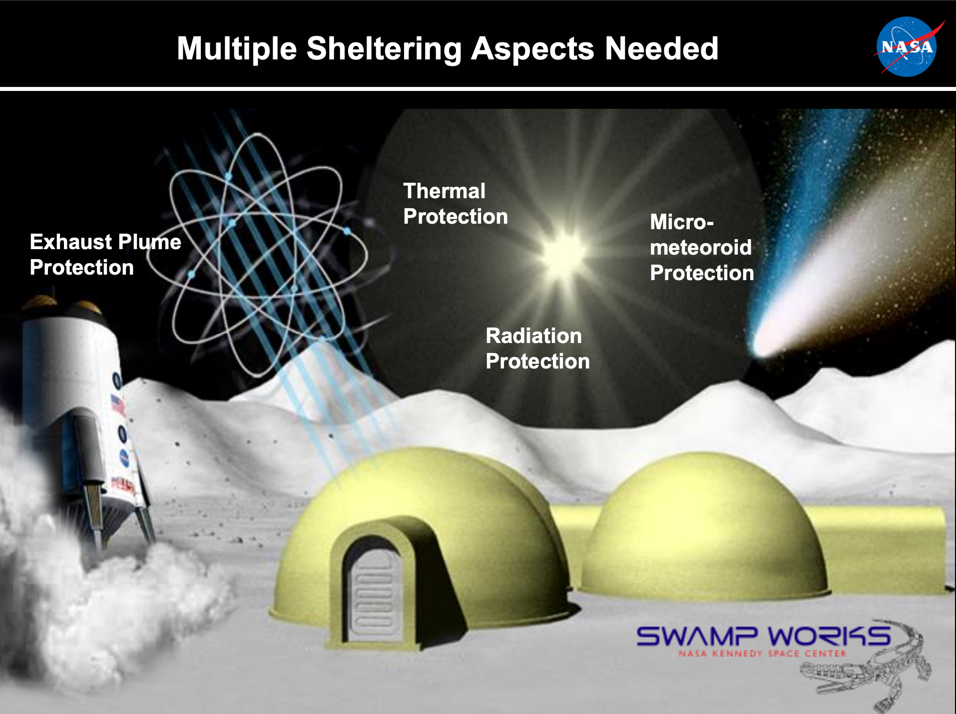 Идея такова: вокруг надувной мембраны, служащей внутренней формой, 3D-принтер послойно наносит лёд, создавая пятисантиметровую ледяную оболочку. Она прозрачная, лёгкая и — что принципиально важно — прекрасно защищает от радиации. Причём лучше, чем большинство материалов, которые можно было бы привезти с Земли. Водород, входящий в состав воды, является одним из лучших радиационных щитов среди доступных веществ.