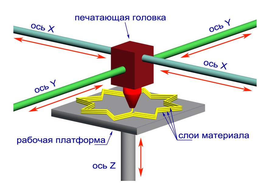 Образно говоря, это напоминает украшение торта кремом из кондитерского мешка: кулинар ведёт насадку по заданной траектории, наносит слой за слоем — и постепенно возникает нужная форма. Принтер делает то же самое, только вместо крема использует материалы посерьёзнее.