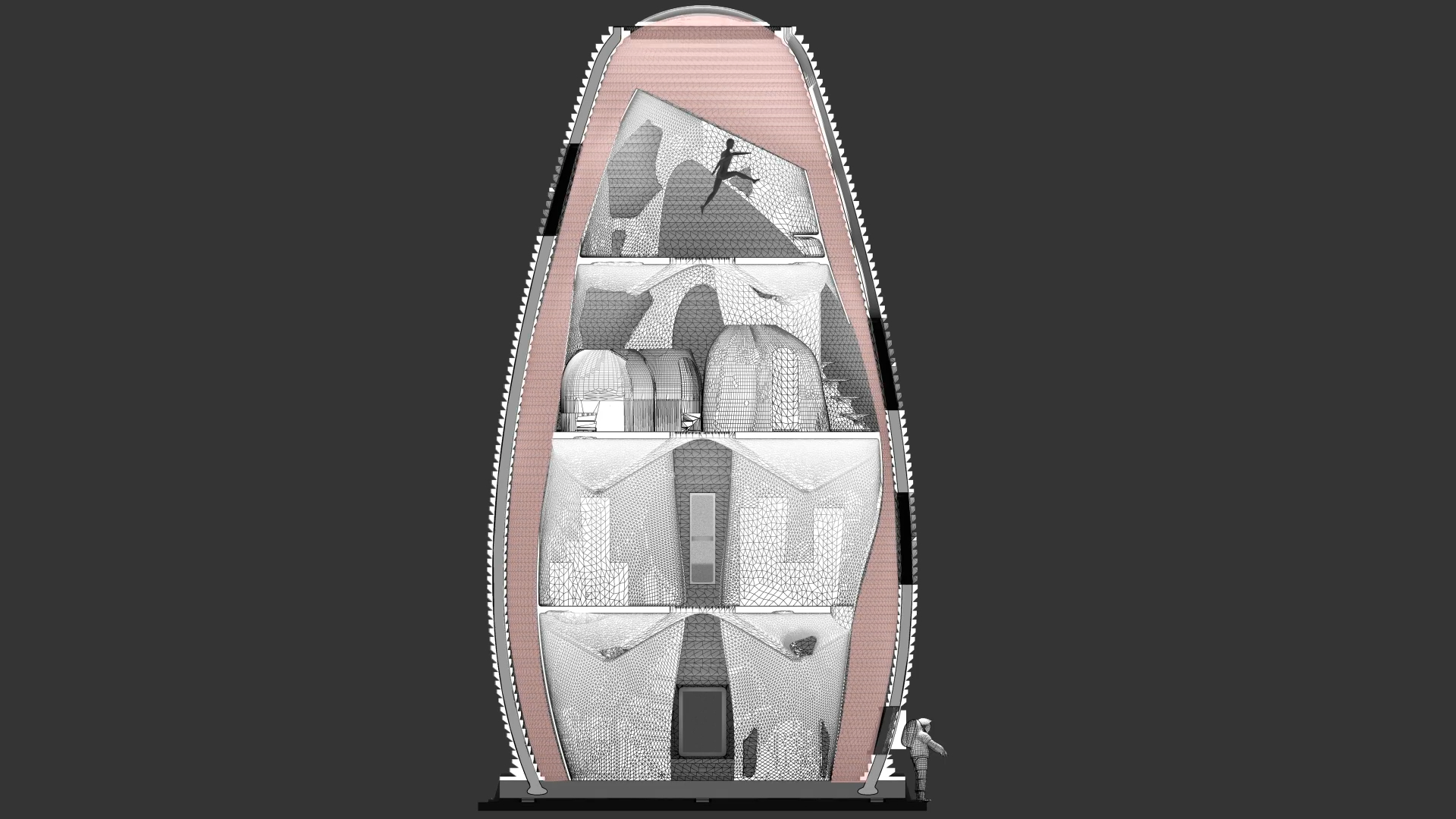 Концепция Hassell строится на двух ключевых элементах. Первый — массивная внешняя оболочка, напечатанная из марсианского реголита, то есть грунта планеты. По замыслу авторов, автономные роботы должны быть отправлены на Марс за несколько лет до прибытия людей. За это время машины напечатают защитный панцирь, который укроет будущих жильцов от радиации и физических воздействий. Второй элемент — лёгкие надувные модули внутри: герметичные капсулы, разворачиваемые уже после прилёта астронавтов. Это жилые комнаты, лаборатории, рабочие пространства. Архитекторы сделали ставку на максимальную прочность при минимальном расходе материалов — и, по всей видимости, им это удалось.