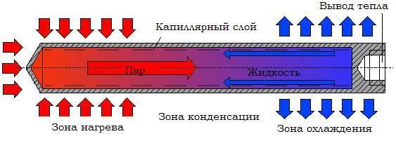Однако просто собрать тепло недостаточно — его необходимо вывести за пределы корпуса. Здесь в работу вступают медные тепловые трубки. На самом деле они полые внутри и заполнены специальной жидкостью. Эта жидкость забирает тепло от медного блока, нагревается и превращается в пар. Далее пар перемещается в холодную часть трубок — ближе к краям корпуса, где расположены небольшие радиаторы. Если трубки занимаются переносом тепла от центра к периферии, то радиаторы рассеивают это тепло наружу. На этом этапе пар охлаждается и снова конденсируется в жидкость, образуя непрерывный цикл.