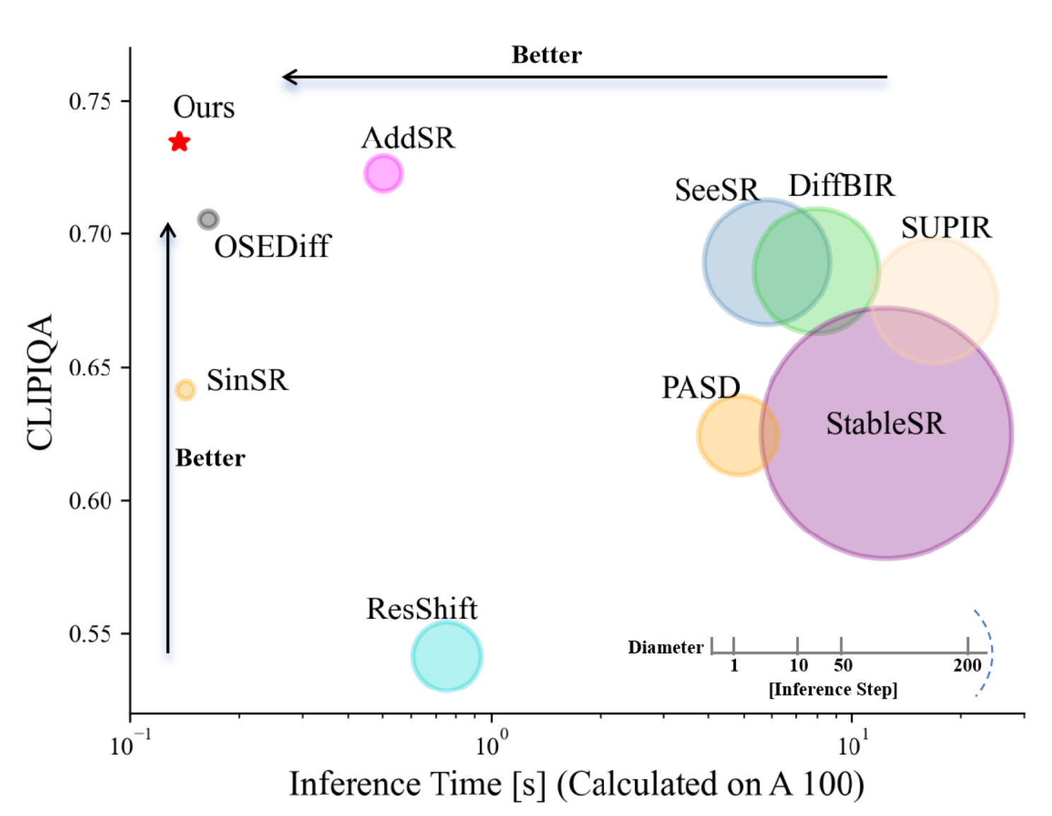 Как и BokehDiff, модель функционирует в один шаг, что делает её примерно в сорок раз быстрее аналогичных диффузионных алгоритмов сверхразрешения. При этом, согласно опубликованным бенчмаркам, TSD-SR демонстрирует лучшее качество среди всех конкурирующих методов.