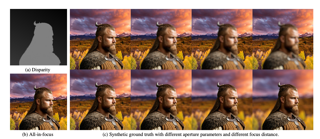В результате получился датасет, о котором можно только мечтать: идеальные пары фотографий — резкая и размытая версии — с любой диафрагмой на выбор и безупречной маской сегментации.
