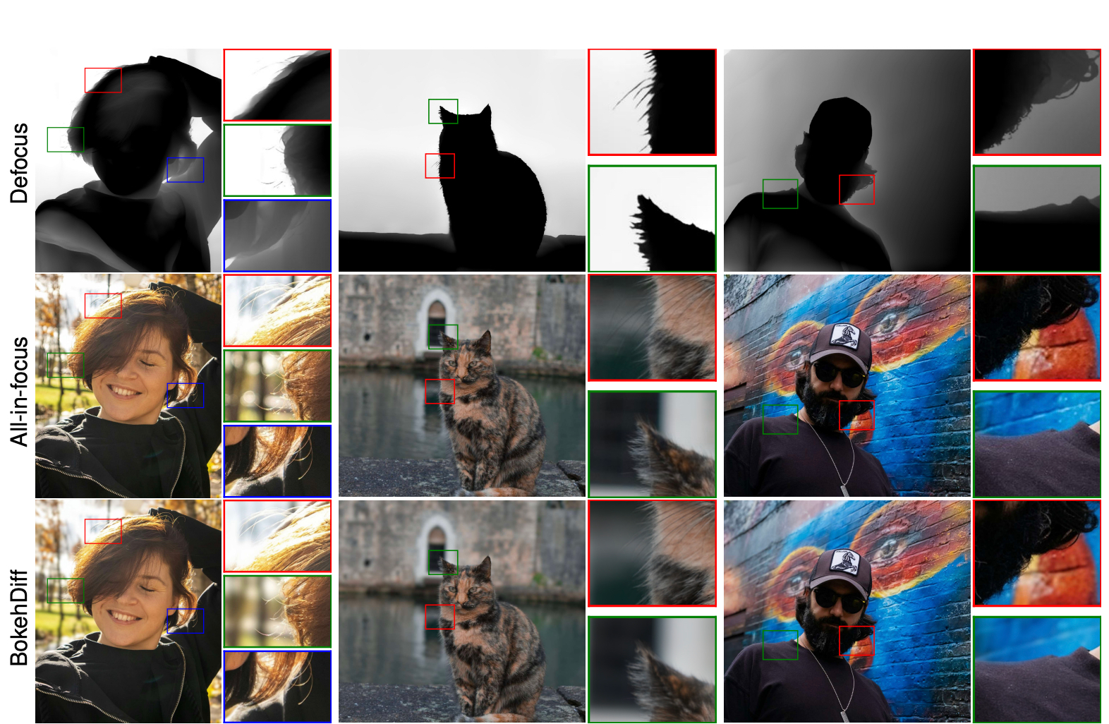 В результате BokehDiff научился не полагаться слепо на карту глубины и не «паниковать» из-за ошибок, а принимать решения по контексту — опираясь на своё «понимание» того, как должно выглядеть оптически корректное размытие. Именно поэтому на практике алгоритм демонстрирует поразительную устойчивость к неточностям входных данных.