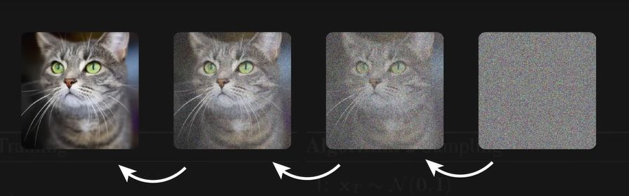 Базовый принцип прост. Модели предъявляется изображение, состоящее из случайного шума, и даётся указание: «На этой картинке — суслик. Убери шум и покажи суслика». Модель шаг за шагом удаляет шум, на каждом этапе «воображая» всё больше деталей. Через сотню, две сотни, пять сотен итераций шум исчезает — а суслик действительно появляется.