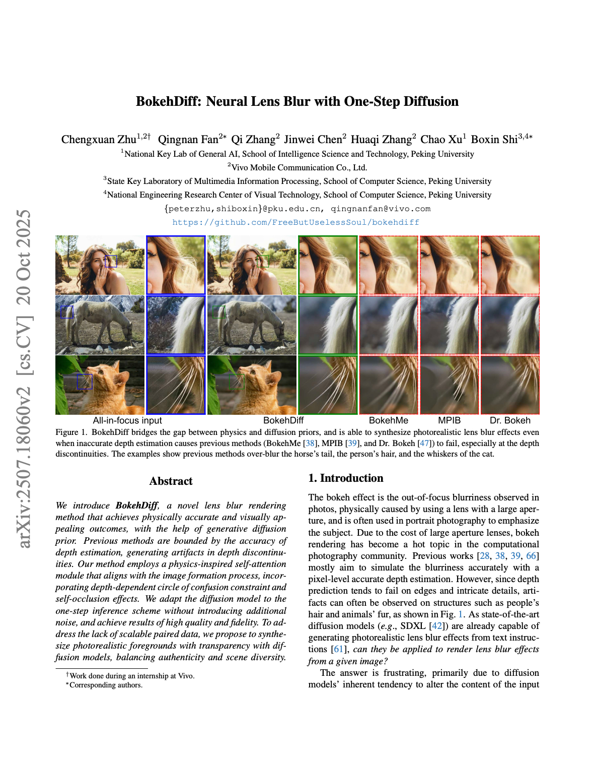 BokehDiff — это диффузионная модель, построенная на базе архитектуры Stable Diffusion XL. Разработчики этого не скрывают: соответствующая научная работа опубликована в открытом доступе на arxiv.org и была принята на конференцию ICCV 2025 — одну из наиболее авторитетных площадок в области компьютерного зрения.